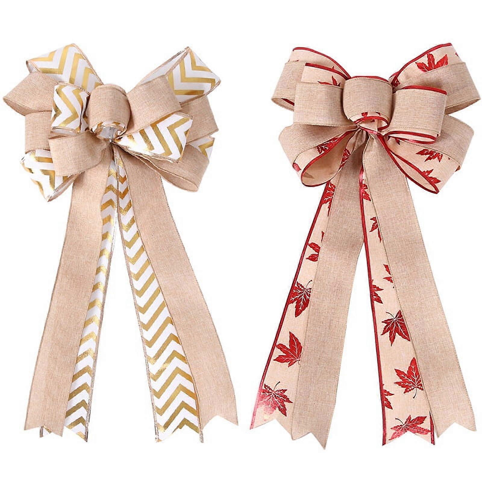 2Pcs Big Bow with Natural Burlap with Ribbons Bow Use for Christmas Gift Wrapping, Party Decoration