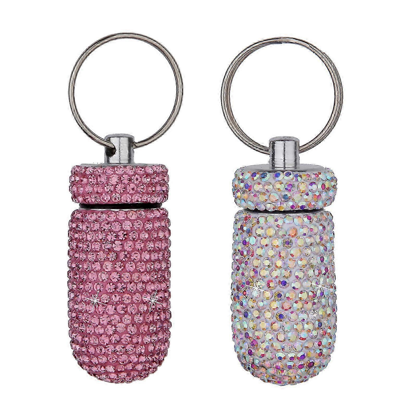 Travel Friendly Miniature Tablet Box Multipurpose Tablet Holder Pendant Keychain with Rhinestones for Outdoor Activity black x white