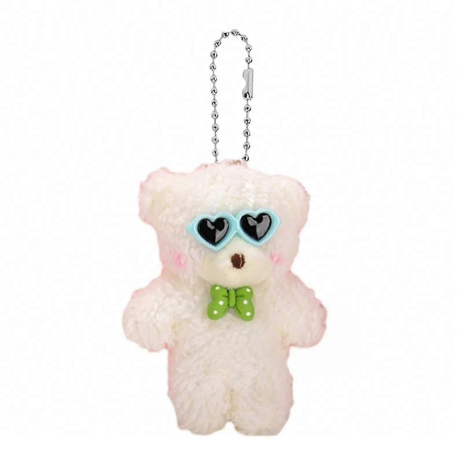 Toy Bear Pendant Keyring Plush Backpack Pendants Blush Bear Keychain with Glasses Handmade Gift Ornament for Children Yellow