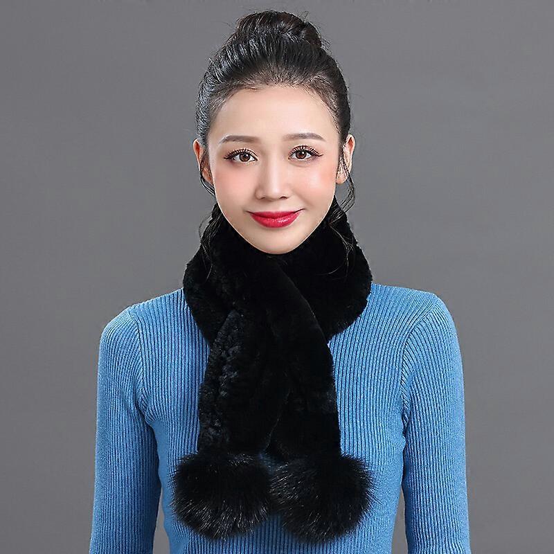 Real Rex Rabbit Fur Scarf Women Winter Warm Neckerchief Fox Fur Pompom Soft