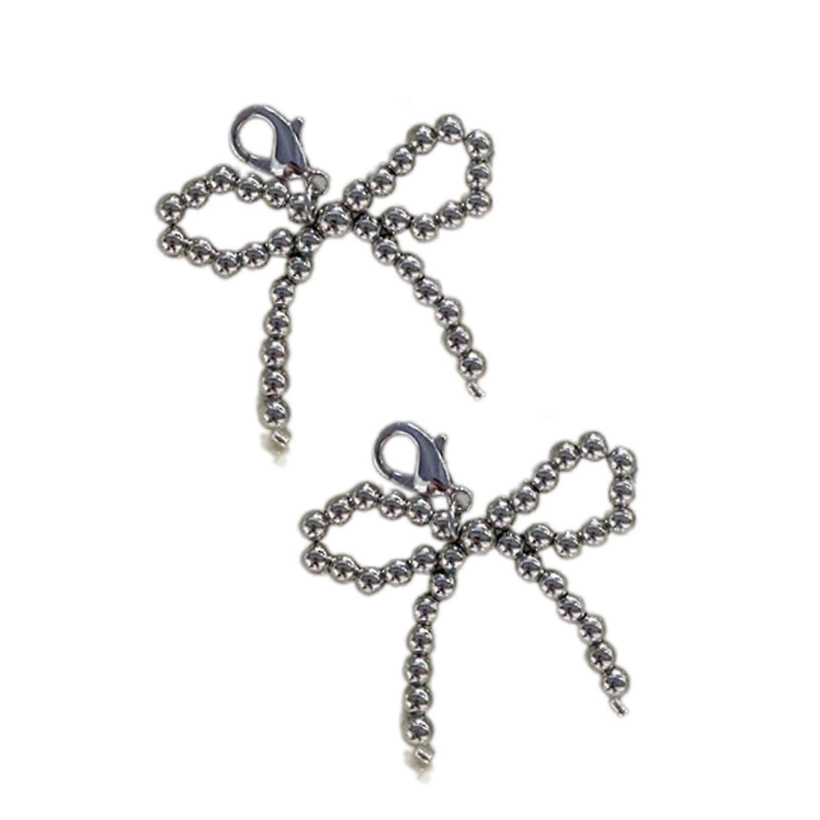 Pearl Bowknot Shoe Buckle Ornament Sweet Bows Charm Keychain for Jewelry Making Phone Pendant Handbag Shoe Decorations medium size