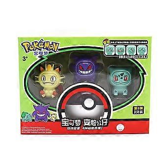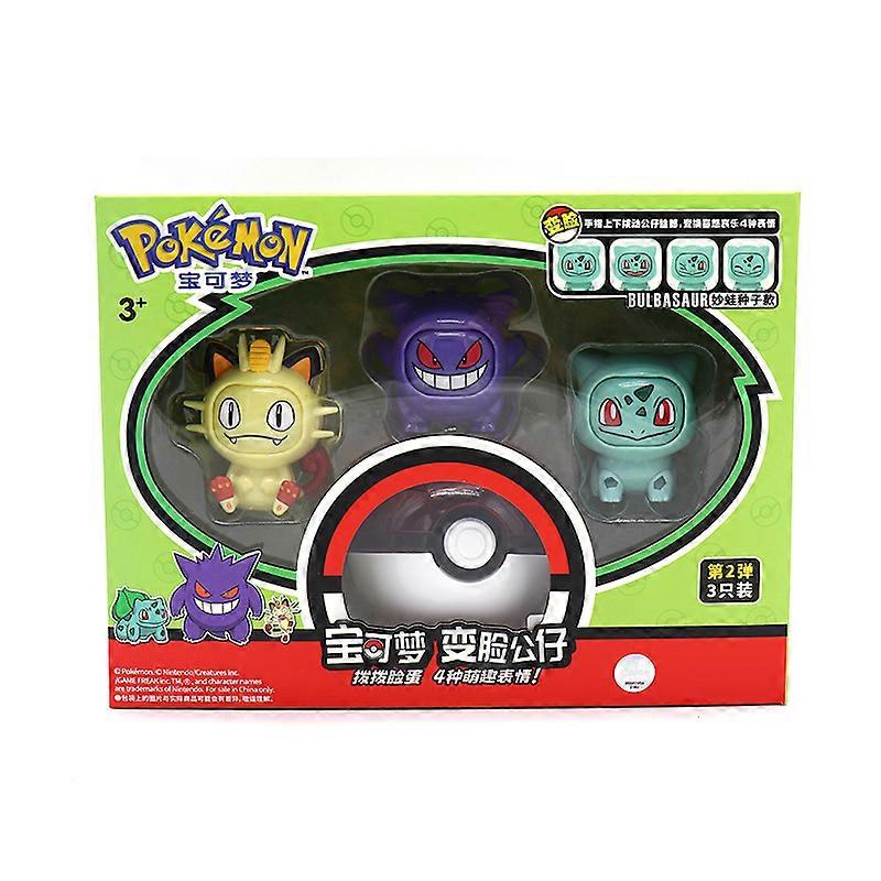 Genuine Pokemon Anime Toy Pikachu Eevee Gengar Mewtwo Action Figure Face-Changing Doll Elf Ball Bulbasaur Pokeball Model Set Toy
