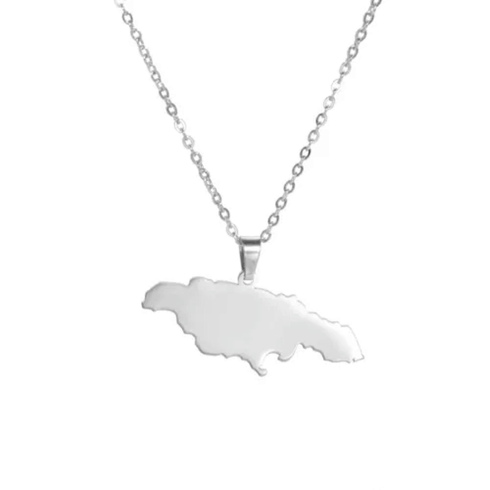 RSAMD Jamaica Map Pendant Necklaces Jewelry l Map of Jamaica Country Necklace Gift-Silver White
