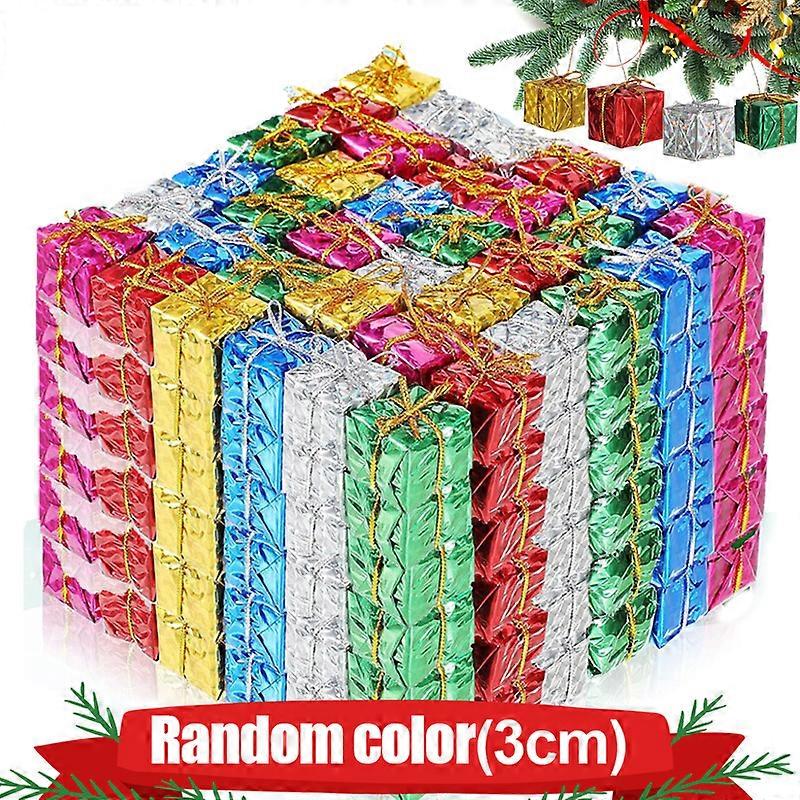 Mini Christmas Foil Boxes Ornaments Xmas Tree Hanging Foam Gift Boxes Shiny Wrapped Present Boxes Holiday Miniature Decoration