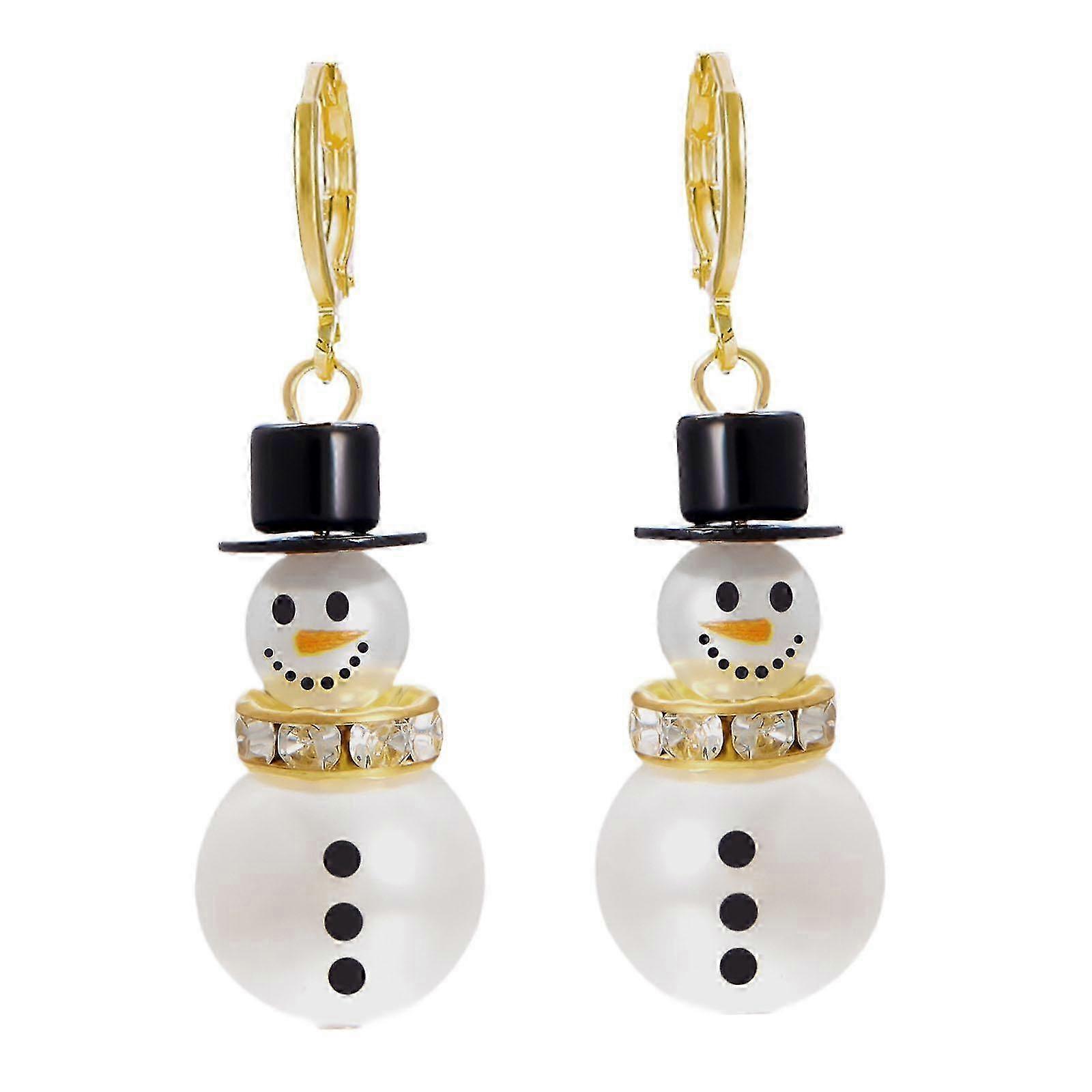 Christmas Lady Earrings, 1 Pair Alloy Rhinestone Pearl Material, Snowman Pendant Earrings