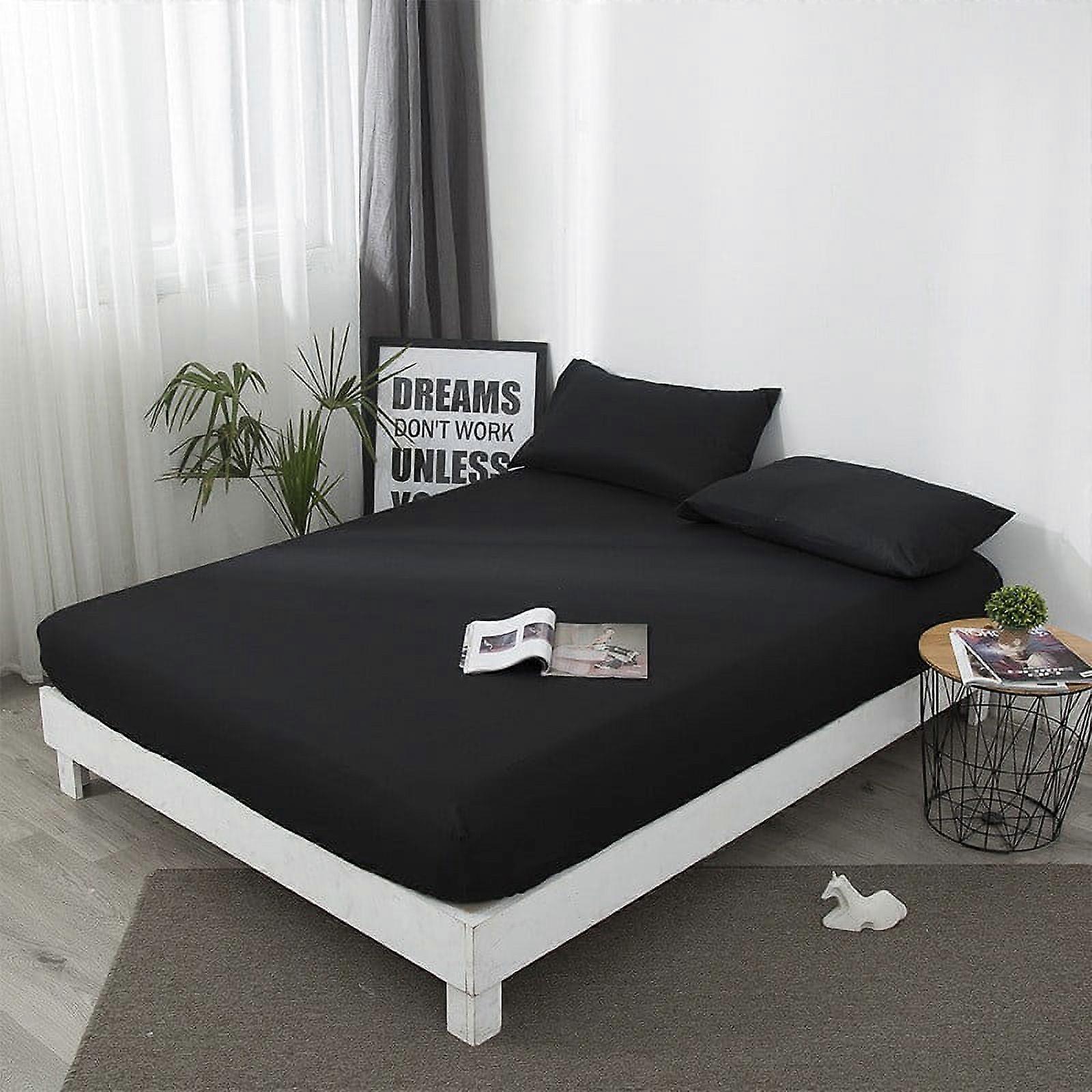 Poaug Four-Piece Bedding Set - Breathable, Non-Slip Mattress Cover with Dust Protection, Black