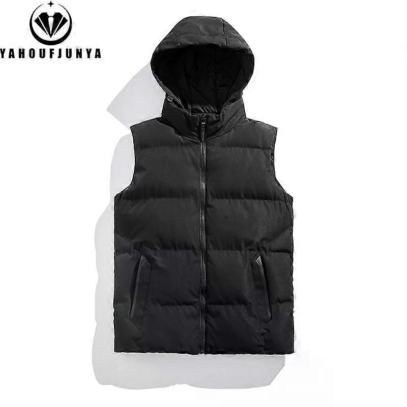 2024 New Autumn Men Sleeveless Fleece Warm Solid Hooded Vest Men Winter Outdoor Casual Windproof Fashion Zipper Vest Male Coat