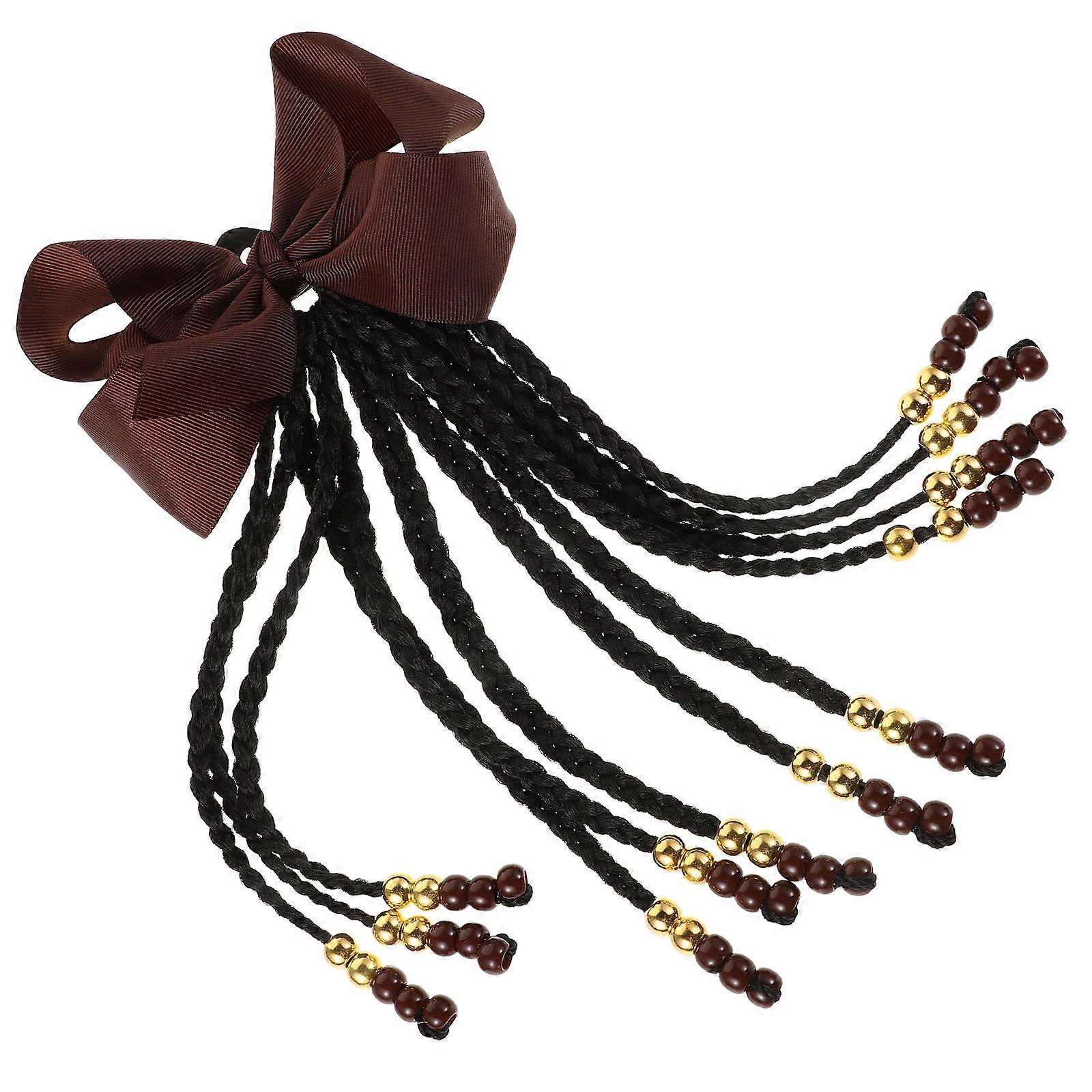 Adorable Coffee Braided Ponytail Extension with Beaded Bowknot for Girls Easy to Use Lightweight 20 Inches