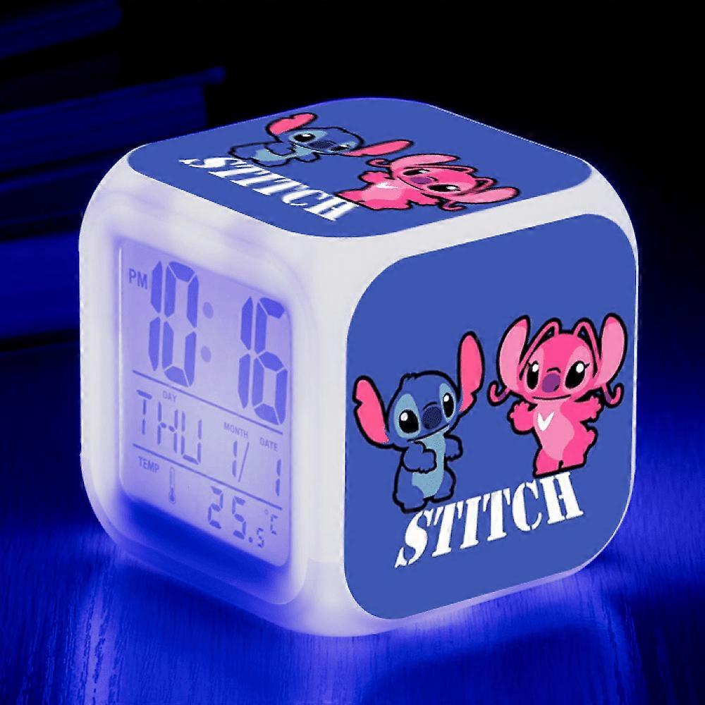 HANNTAOO Digital Alarm Clock for Kids, Cartoon Stitch Pattern, 7 Color LED, Thermometer, Night Light, Gift for Boys Girls A93-1832 HTNL#1373