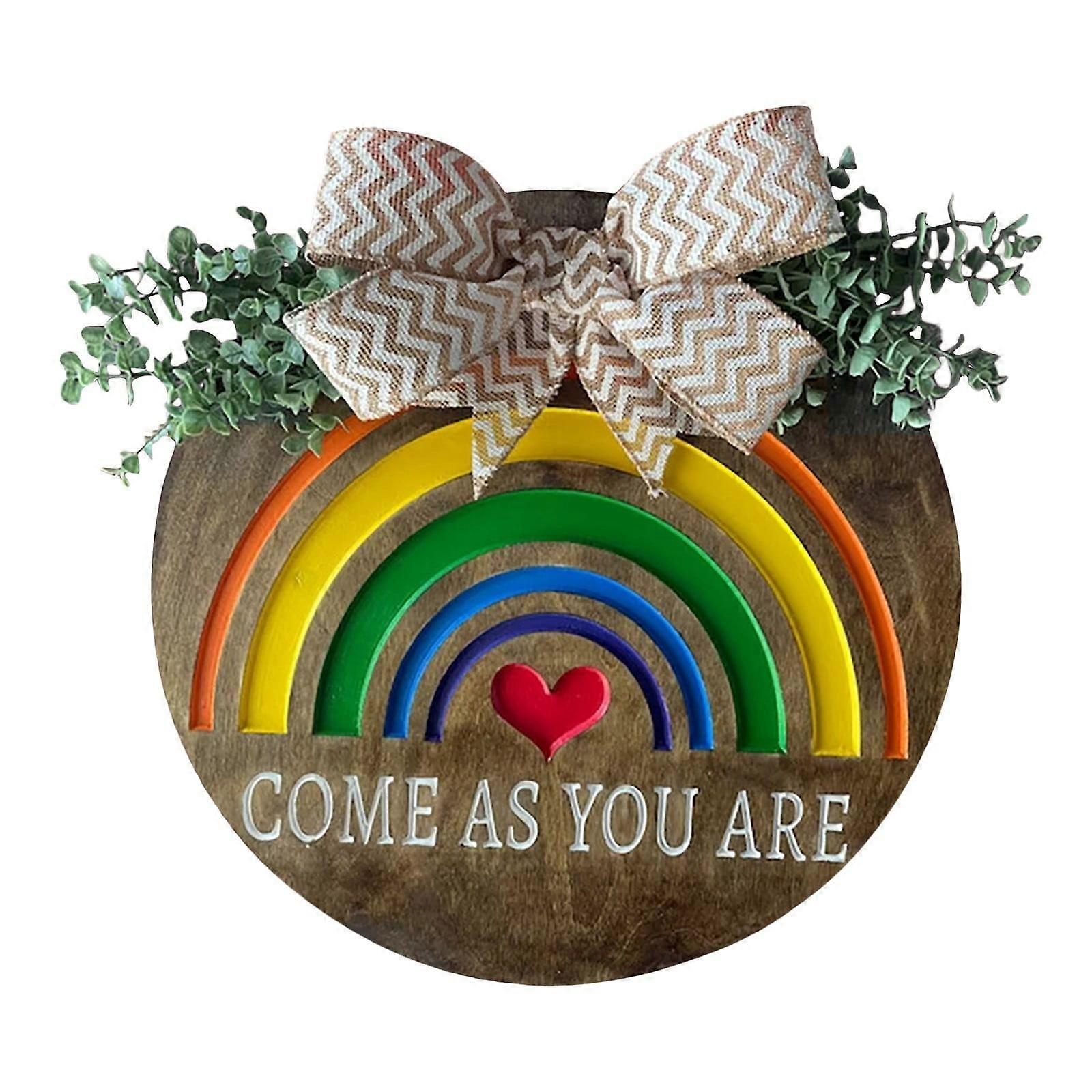 Love Rainbow Wooden Door Sign Home Decoration Wooden Crafts Hanging Circular Hanging Pieces 30*30*3cm