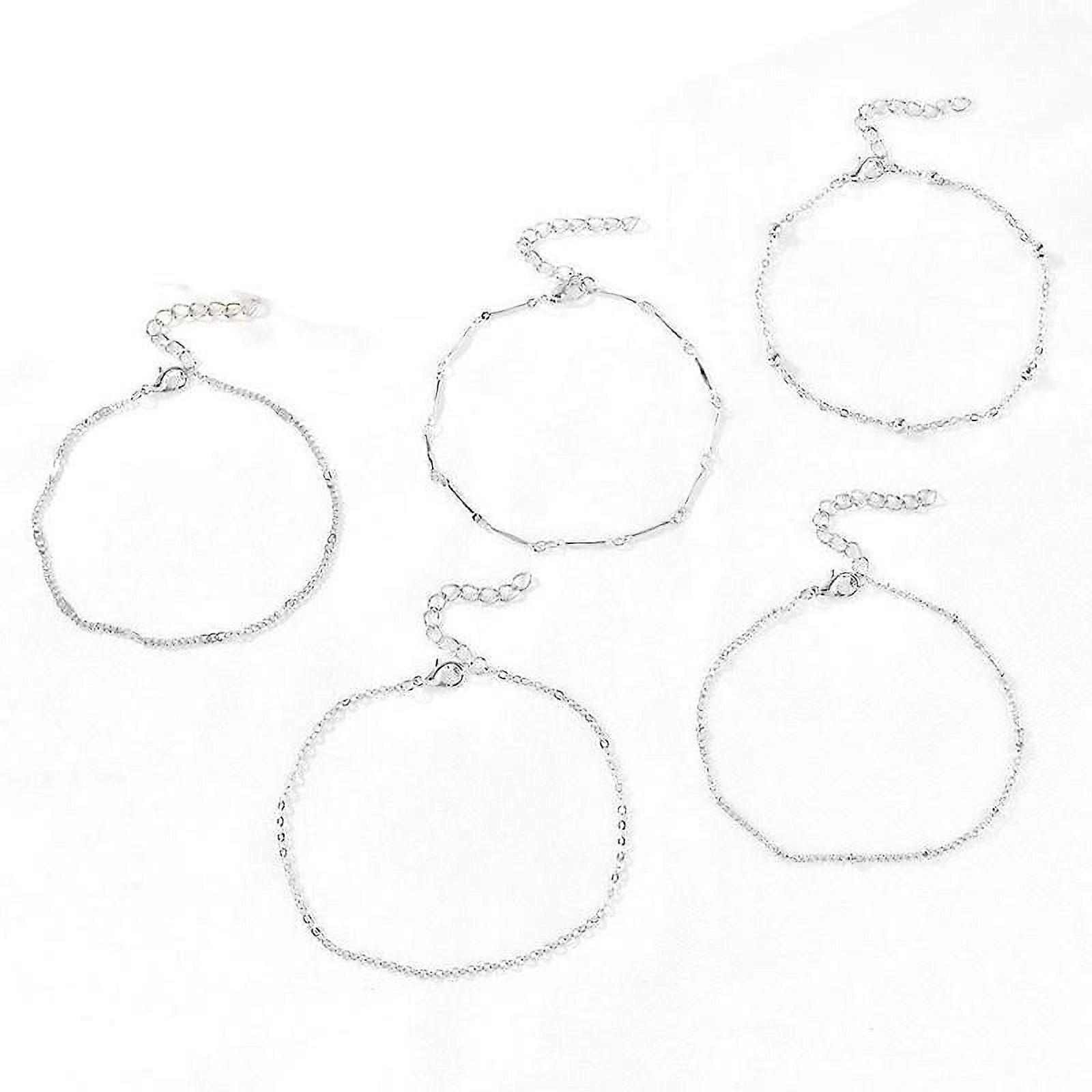 YMDZ 5pcs 925 Silver Ankle Bracelet Set for Women Beach Anklet Jewelry Gifts