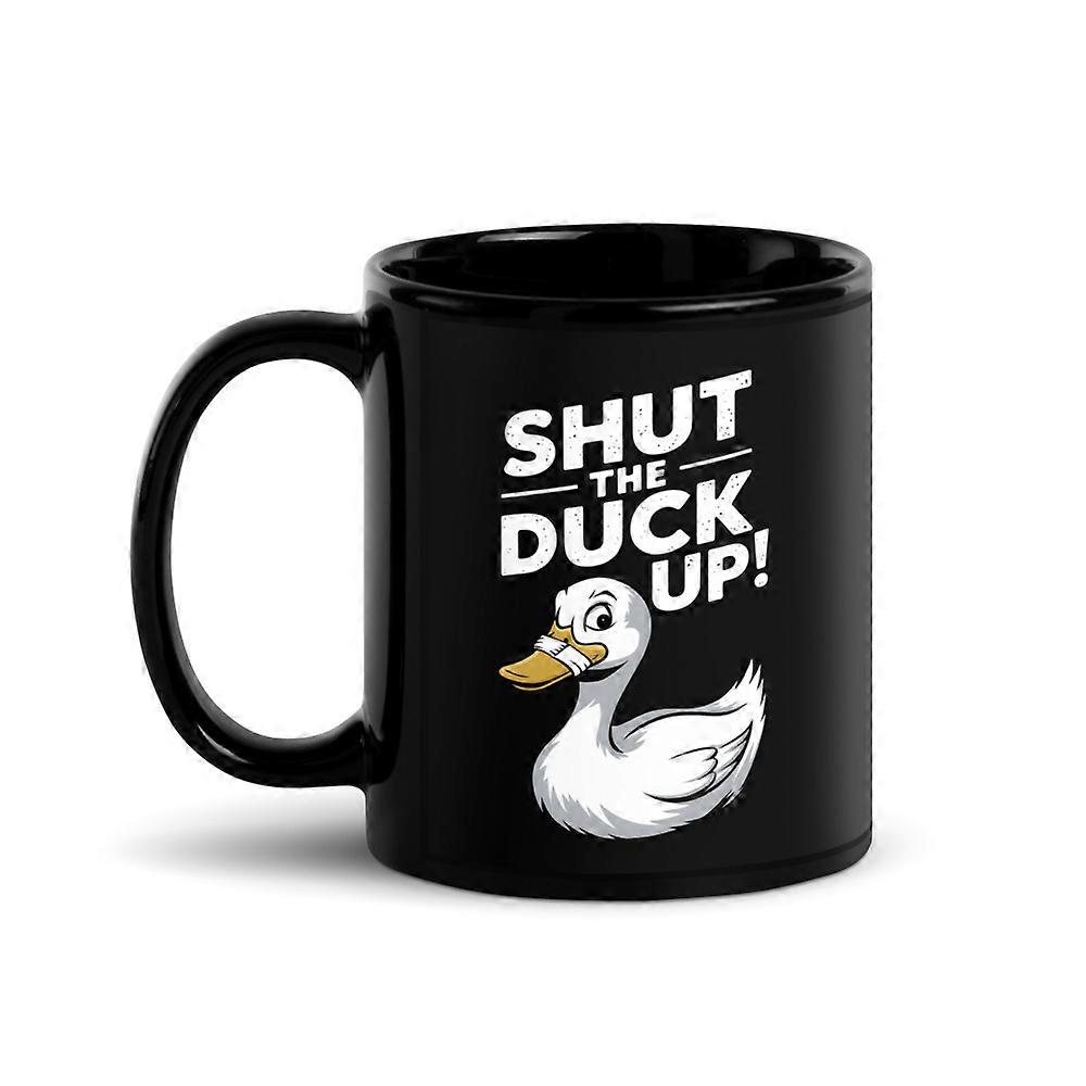 Funny Duck Lover Pun Black Glossy Mug, Shut The Duck Up (11 oz)
