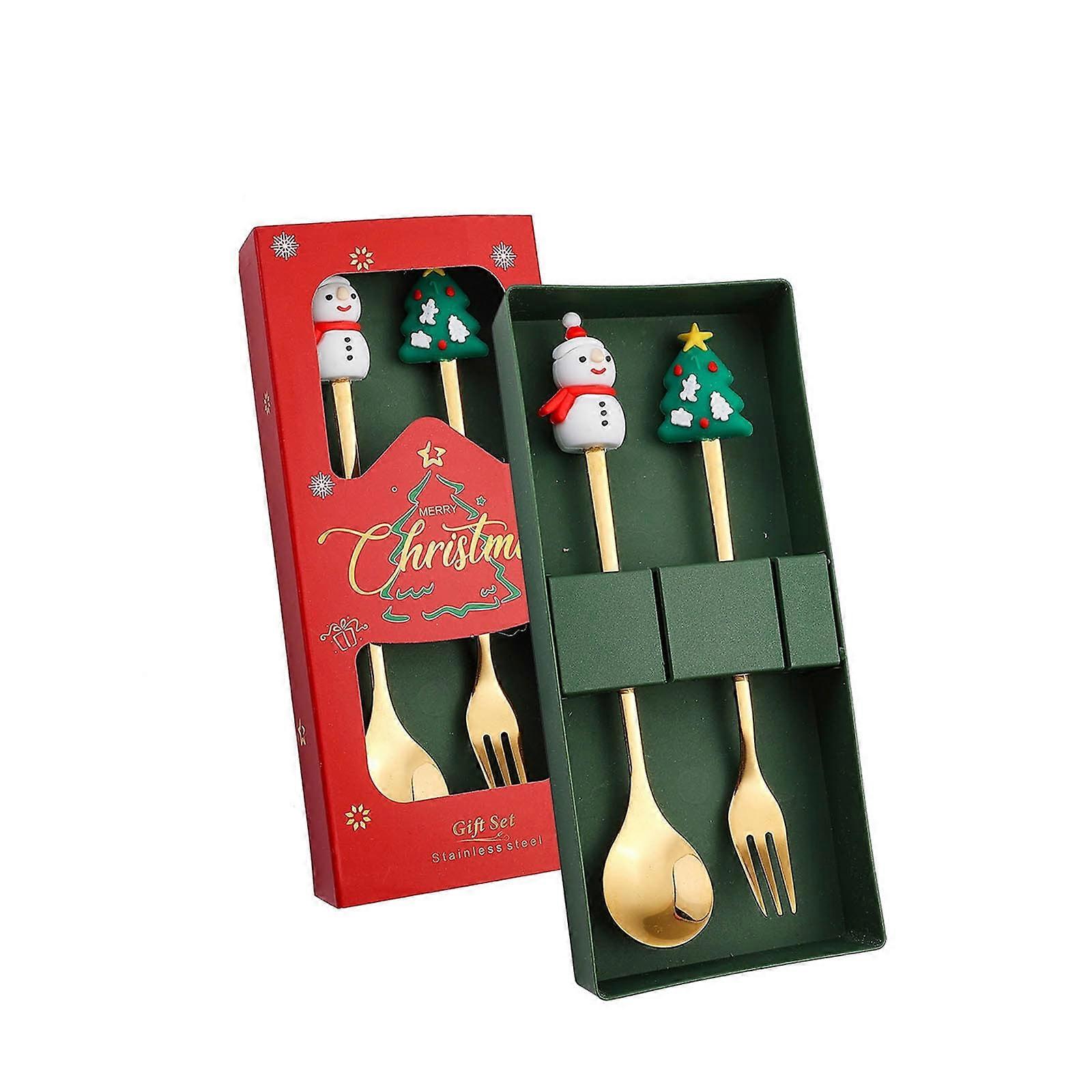 Cailmei Christmas Spoon Christmas Dessert Spoon Fork Stainless Steel Tableware Set Cute Doll With Hand Gift D 18*8*2.5Cm