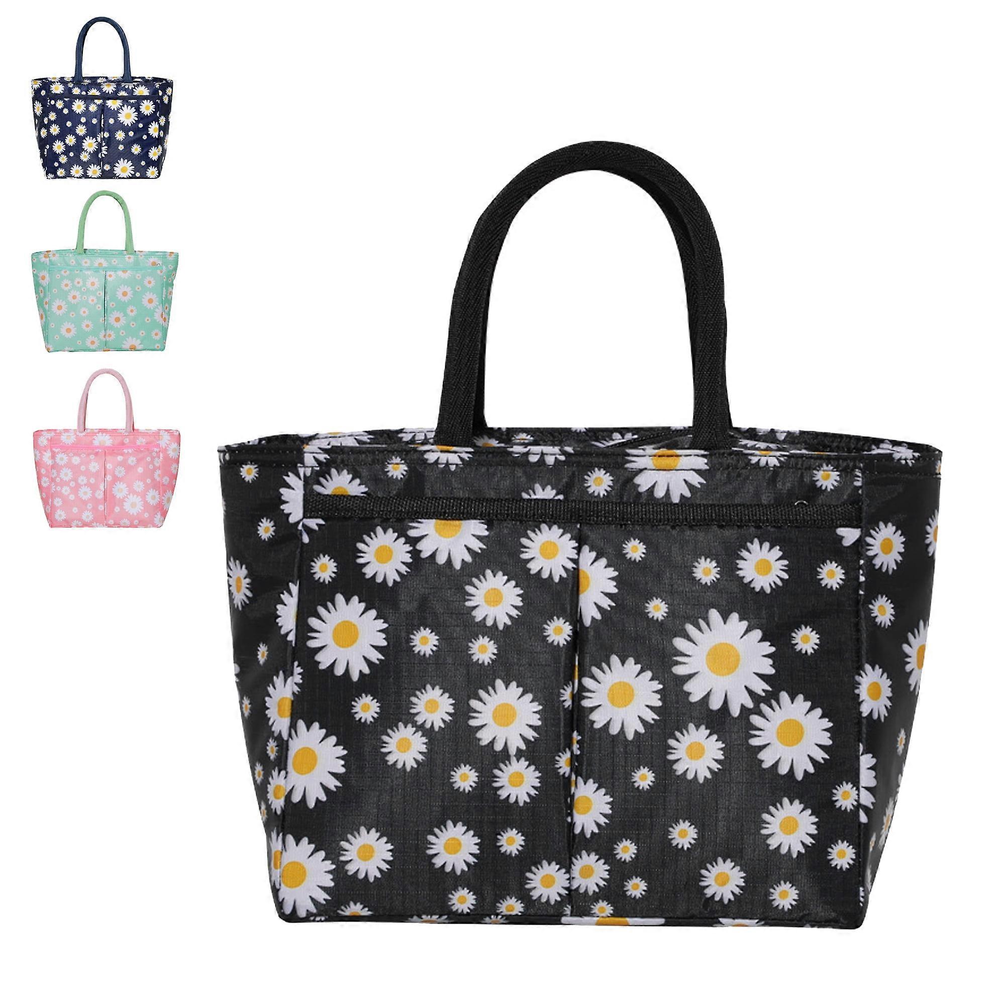 Daisy Printing Lunch Bag Men Women Kids Thermal Cooler Insulated Lunch Bag for Office Travel,Black