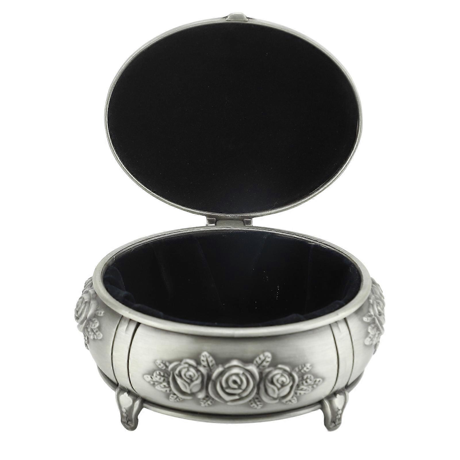 Retro Rose Metal Oval Jewelry Box Ring Necklace Earrings Silver