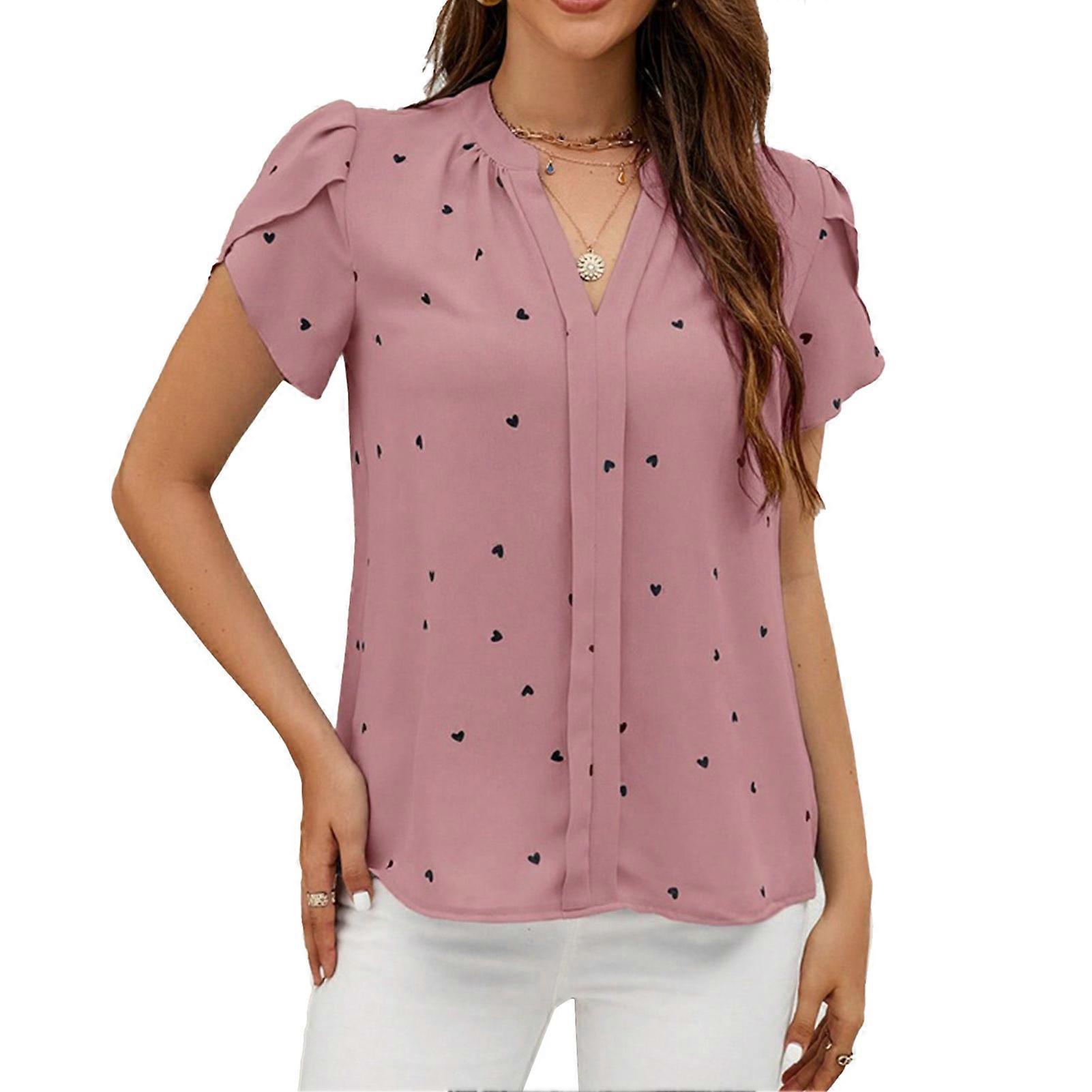 Petal Sleeve Blouse Heart Print V Neck Pink M