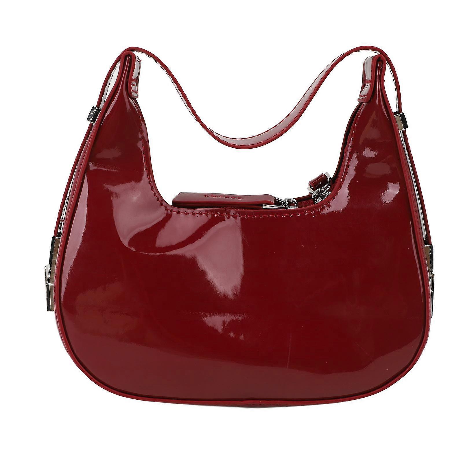 Women Underarm Bag Glossy PU Leather Shoulder Messenger Bag Red Small