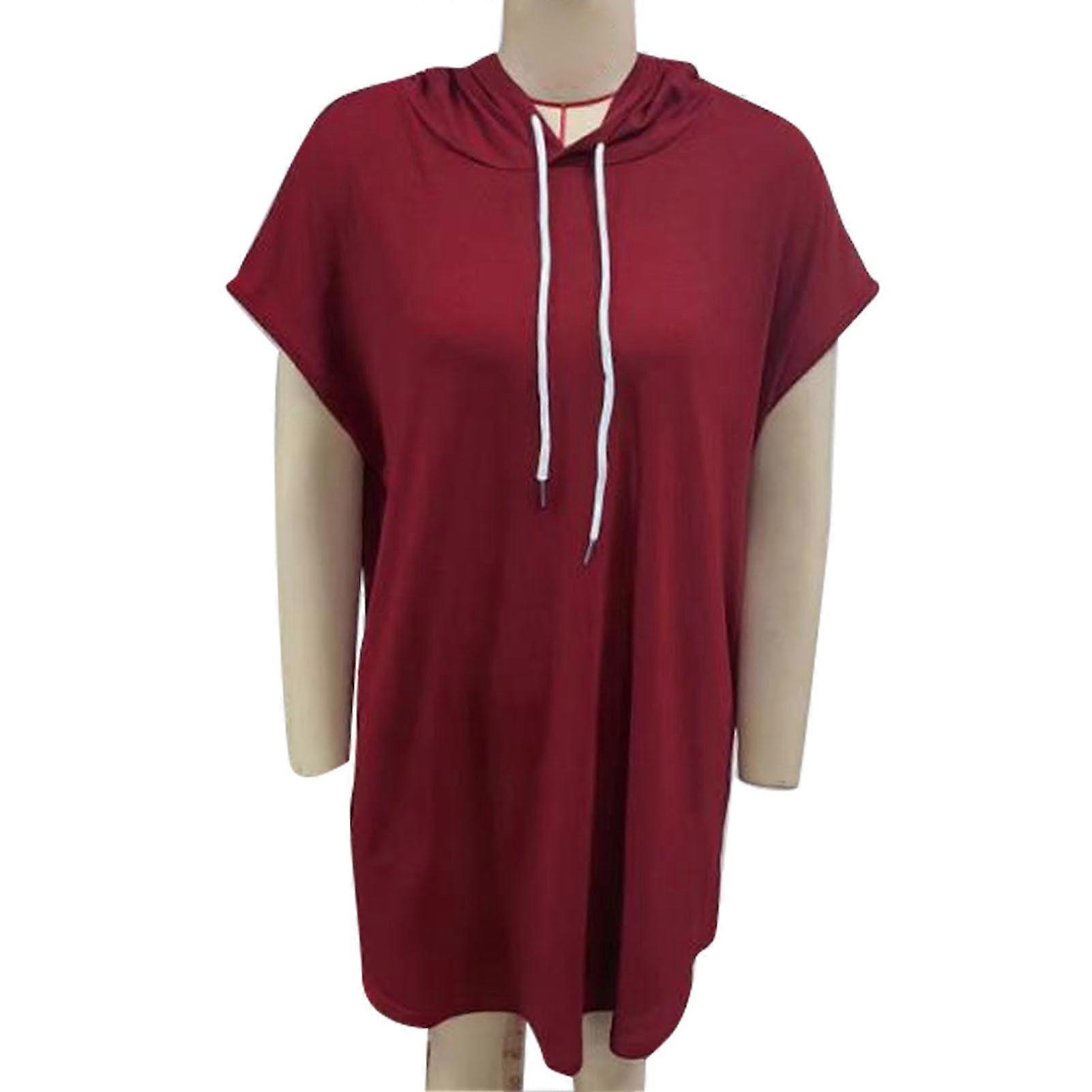 Hooded Drawstring Dress Short Sleeve Fitted Women Hoodie Burgundy XL