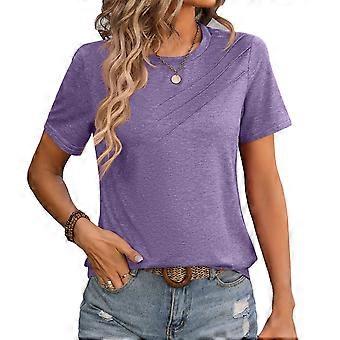 Round Neck Pleated Blouse Casual Short Sleeve Purple L
