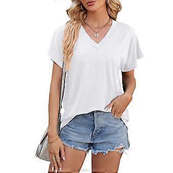 Women Short Sleeve V Neck Loose Breathable T Shirt White XL