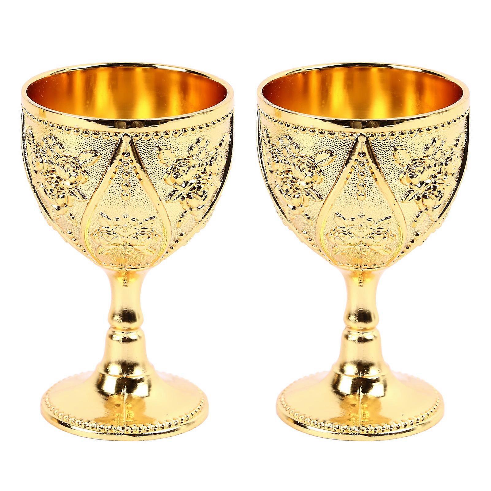 2 Pcs Wine Glass 3D Relief Rose Flower Vintage Gold