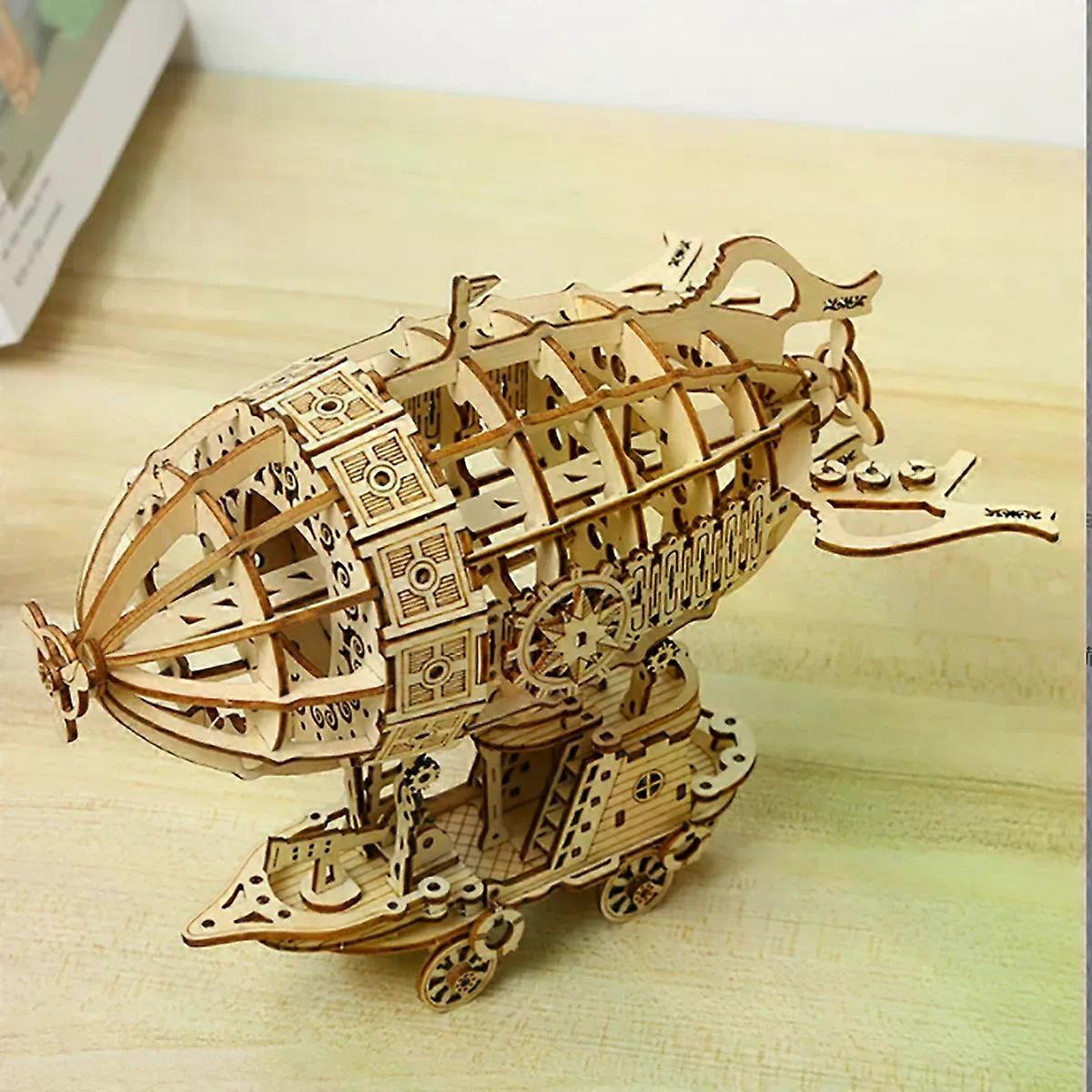 Airship 3D Car Wooden Puzzle Scale Model DIY Model Kit Handcraft Gift Home Decoration Mechanical Model Kit Building Toy