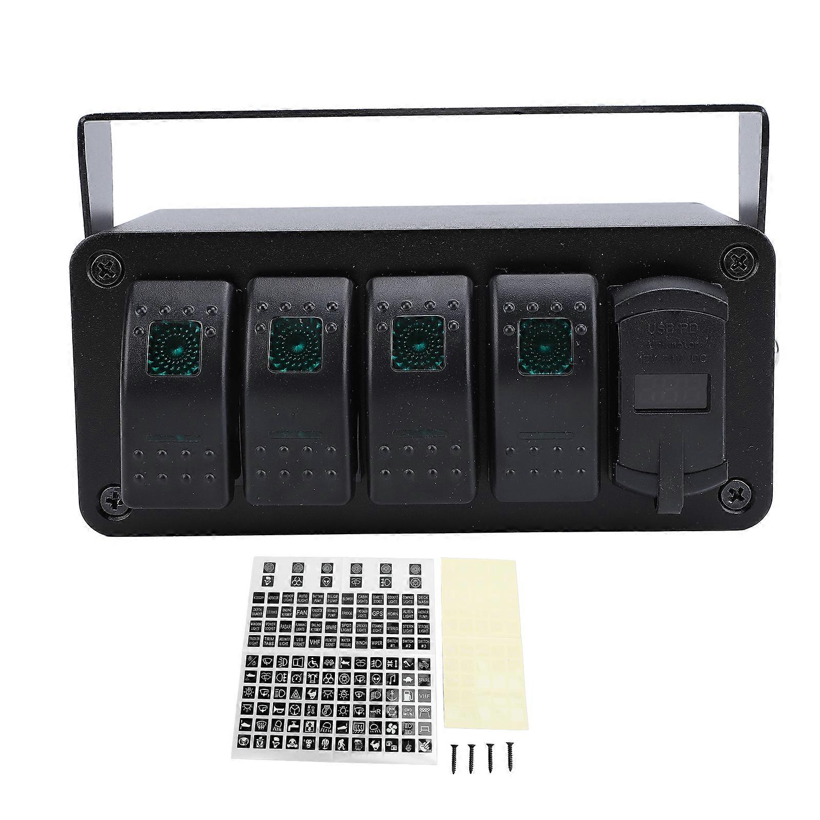 4 Gang Rocker Switch Panel PD USB QC3.0 Waterproof Green