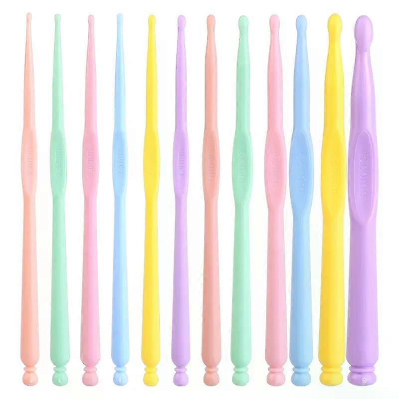 12Pcs/Set Plastic Crochet Hooks Yarn Knitting Hand Sewing Needles Grip Ergonomic Handle Knit Weave DIY Craft Tools Random Color