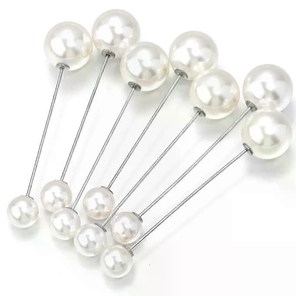 10Pcs Imitation Pearl Brooches Safety Pin Beige Double Beads For Fixing Clothes Skirts Safety Pin DIY Fashion Jewelry Party Gift