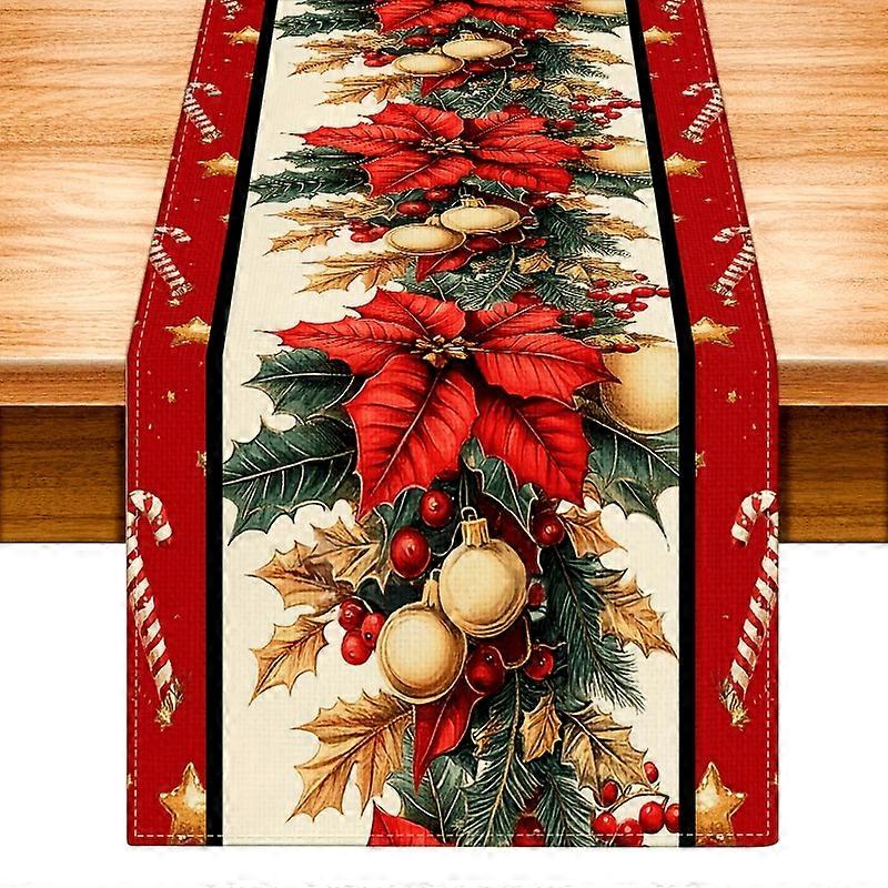 Christmas Poinsettias Red Green Polyester Linen Table Runners Coffee Party Decor Reusable Dining Table Runners Party Decorations