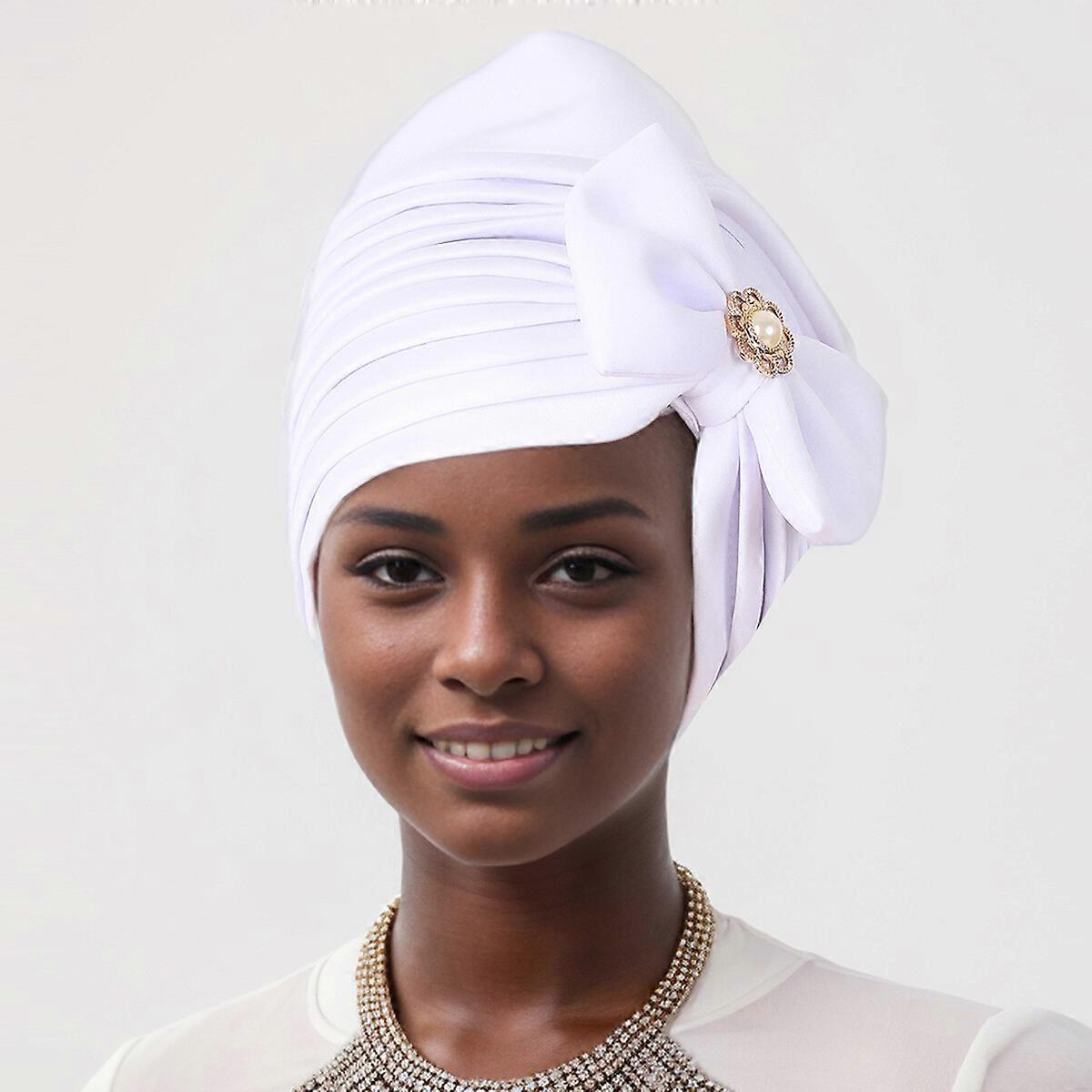 Nigerian Head Wrap Bowknot Bonnet Hat Women African Auto Gele Headtie Party Cap