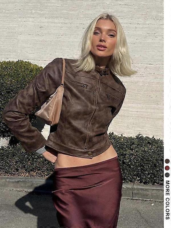 Women's Solid Buttons Mock Neck Zip Up Pu Jacket, Fashion Casual Long Sleeve Outerwear for Daily Outdoor Wear, Women Clothing for Fall & Win