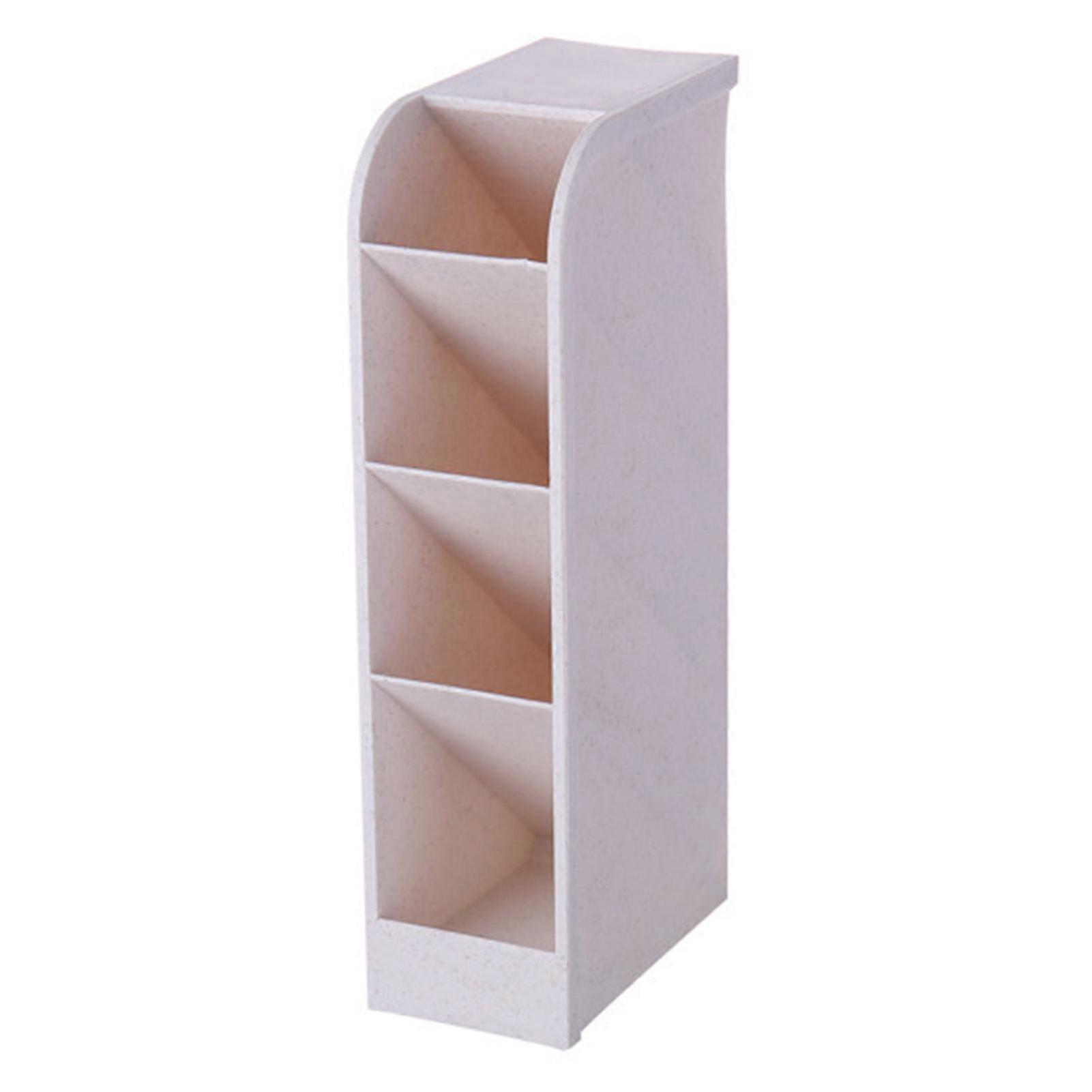 Inclined Pen Holder 4 Grid Plastic Desk Storage Beige