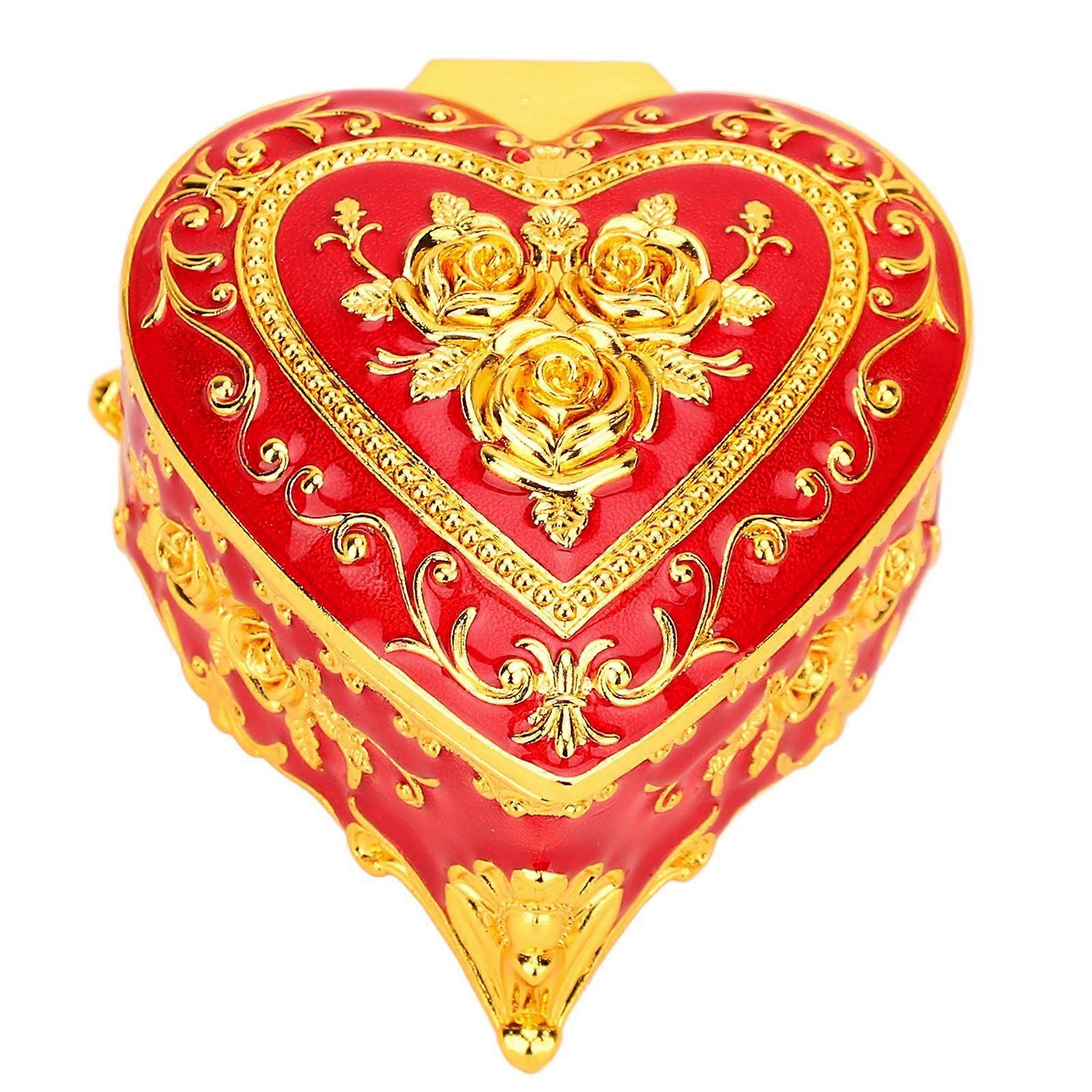 Heart Shaped Jewelry Box Velvet Lining Gold Red
