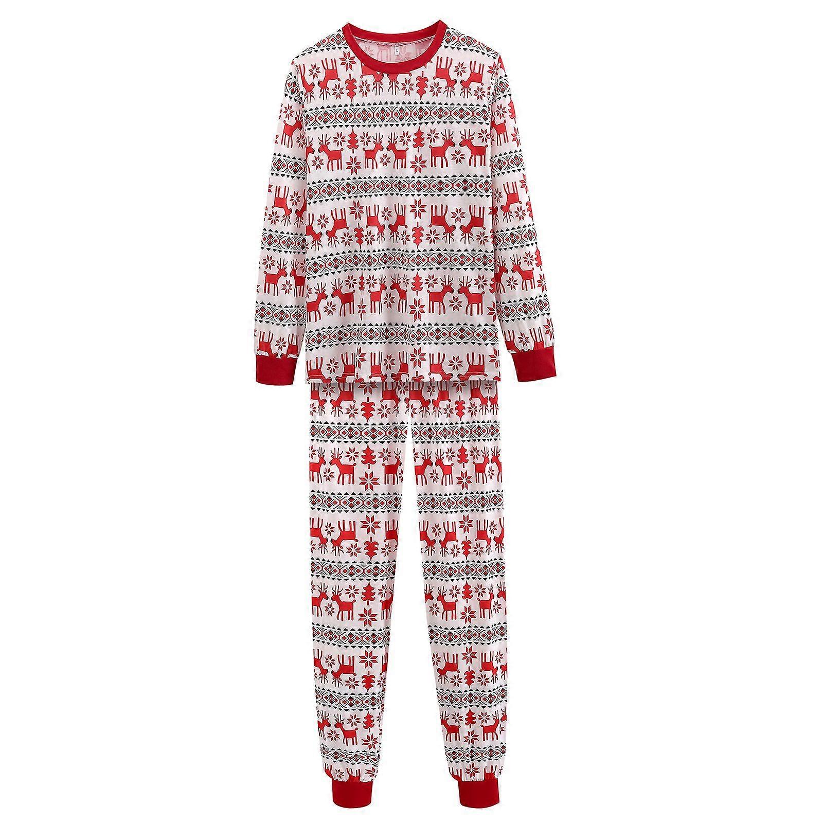 Features 1. Festival inspired design. This parent-child sleepwear set features a snowflake and Christmas tree printed long sleeved top paired with printed stretch pants, perfect for holiday gatherings or home leisure. 2. Soft and comfortable. Parent child Christmas pajamas made of soft and durable fabric. Excellent elasticity perfectly fits the body shape, skin friendly and breathable, comfortable and soft to wear, easy to clean. 3. The ideal sleepwear choice for holidays and Christmas season, suitable for taking photos, relaxing on movie nights, exchanging traditional gifts, and family breakfast time. 4. The matching family Christmas pajamas are of moderate length and will not shrink in the dryer like most pajamas. Specifications: Available styles: Women's, Men's, Children's, Baby, Dog Triangle Scarf Neck Type: Round Neck Main color tone: Red Main material: polyester and spandex blend Women's size: Asian size S-3XL Men's size: Asian size S-3XL Children's size: 2T-14T Baby size: 3M-18M Dog triangle scarf: S, L Package Include: 1 set of pajamas set