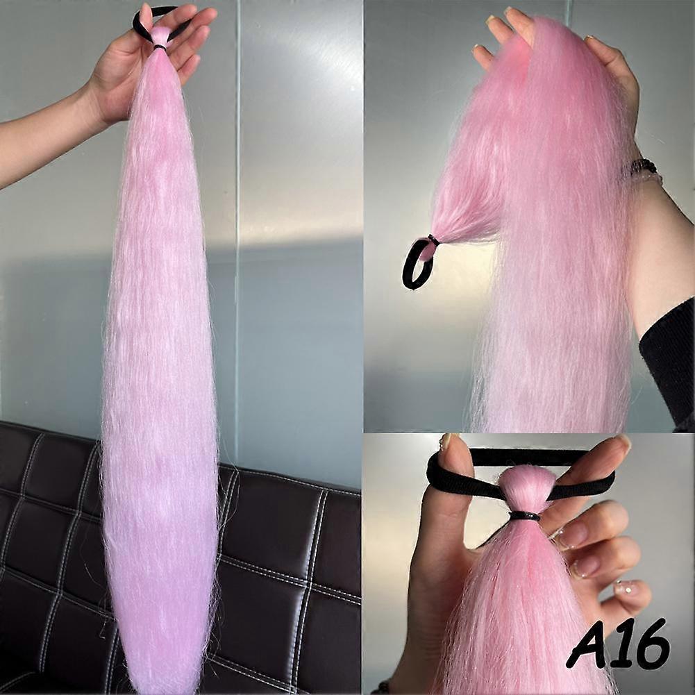 2Pcs Colorful Straight Ponytail Extensions with Elastic Hair Tie, Clip-in Synthetic Braiding Hair for Women, for Long Thick Hair