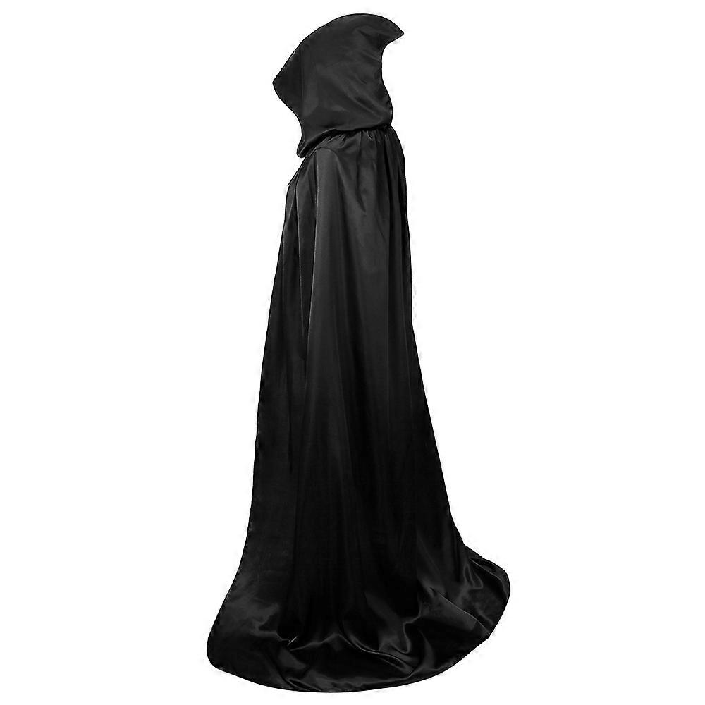 Halloween Cloak Soft Unisex Hooded Black Robe Witch Long Cape Cosplay Costume Prop Party Performance Supplies Holiday Decoration