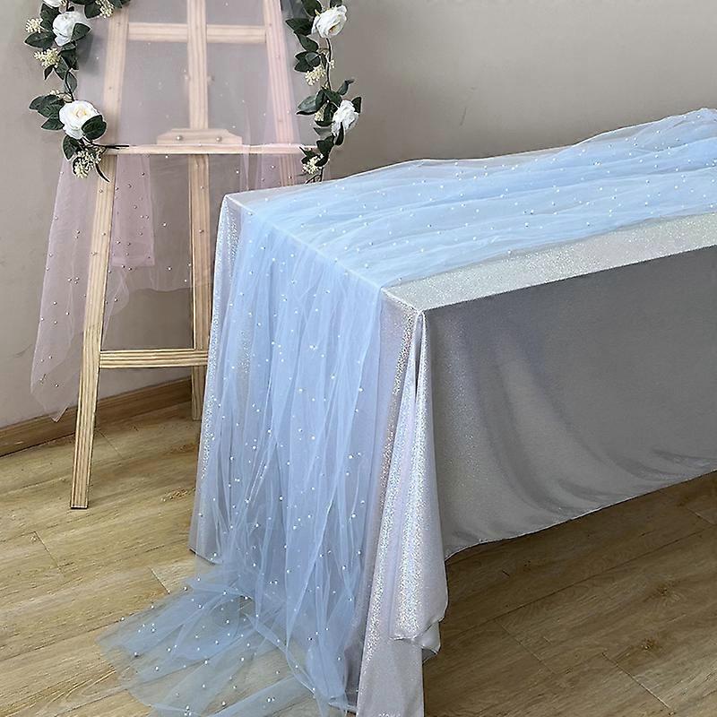 White Pearl Table Runner Tulle Fabric Beaded Mesh Sheer Tablecloths for Bridal Shower Birthday Party Weddings Arch Dessert Decor