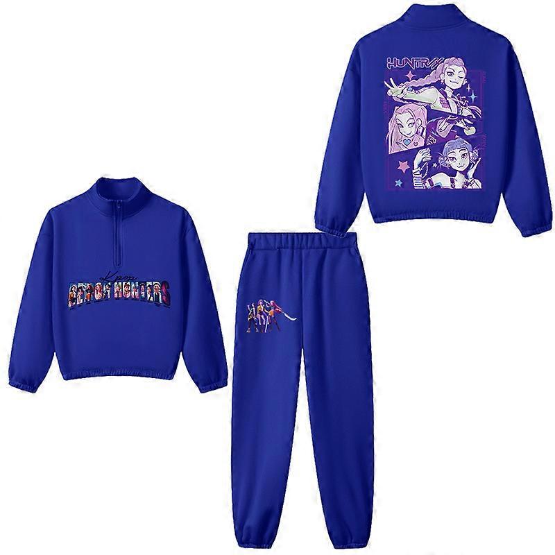 Blue- Witch Hunt Boys' And Girls' Stand-Up Collar Half-Zipper Hoodies + Long Pants Sportswear Fleece Casual Children's Sets