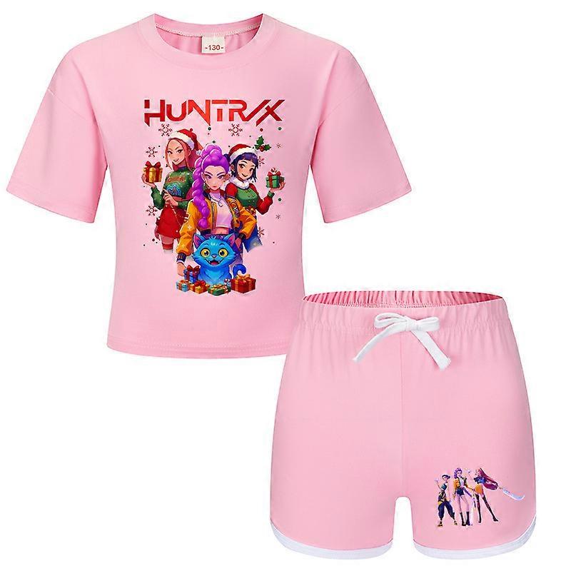 Pink- Witch Hunt Boys And Girls Children's T-Shirt + Shorts Printed Sports Pajamas Children's Set
