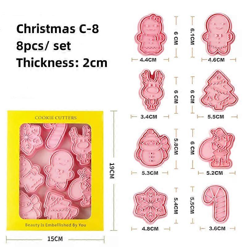 8Pcs/set Christmas Cookie Mold 3D Biscuit Mold Santa Snowman Elk Cookie Mould New Year Party Decor Press Type Baking Gadgets