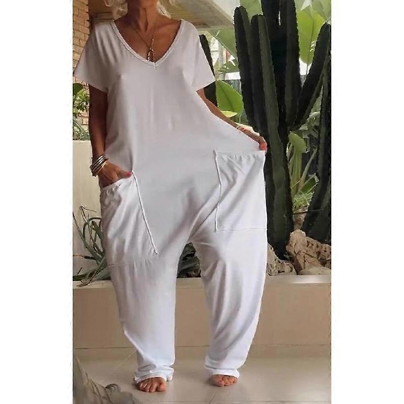 2025 Summer Women's Color V-neck Pocket Low-end Jumpsuit Casual Womenswear