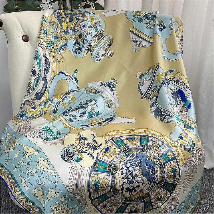 Womens 100% Real Silk Square Scarf Shawl Light Blue Scarves Hand Rolled 43"
