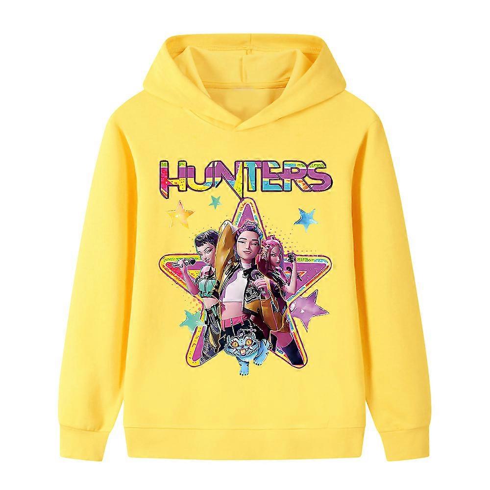 Yellow- Witch Hunt Print Pattern Big Kids Boys And Girls Hooded Sweatshirt B1197