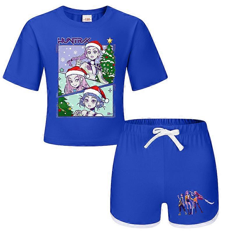 Blue- Witch Hunt Boys And Girls Children's T-Shirt + Shorts Printed Sports Pajamas Children's Set