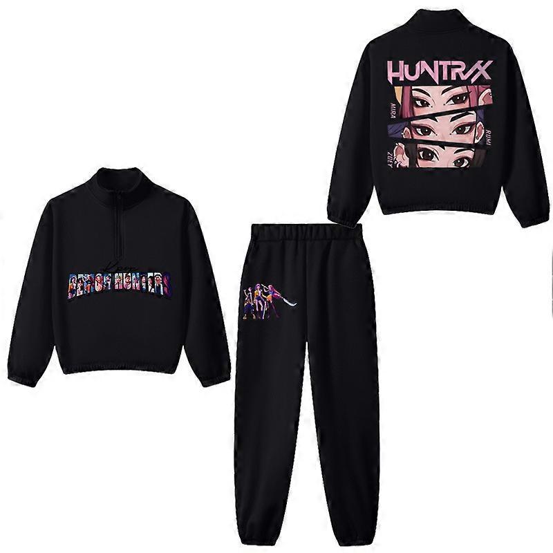 Black- Witch Hunter Boys And Girls Set Collar Half-Zip Sweat Trousers Sports Fleece Casual Children's Suit