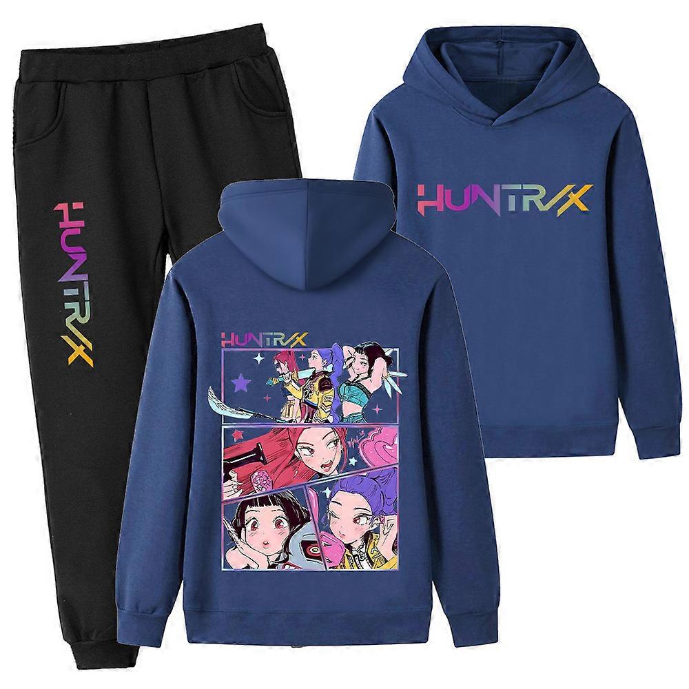 Navy Blue- Witch Hunt Printed Children's Set, Kids' Hoodie And Sweatshirt Set Pb1218-2