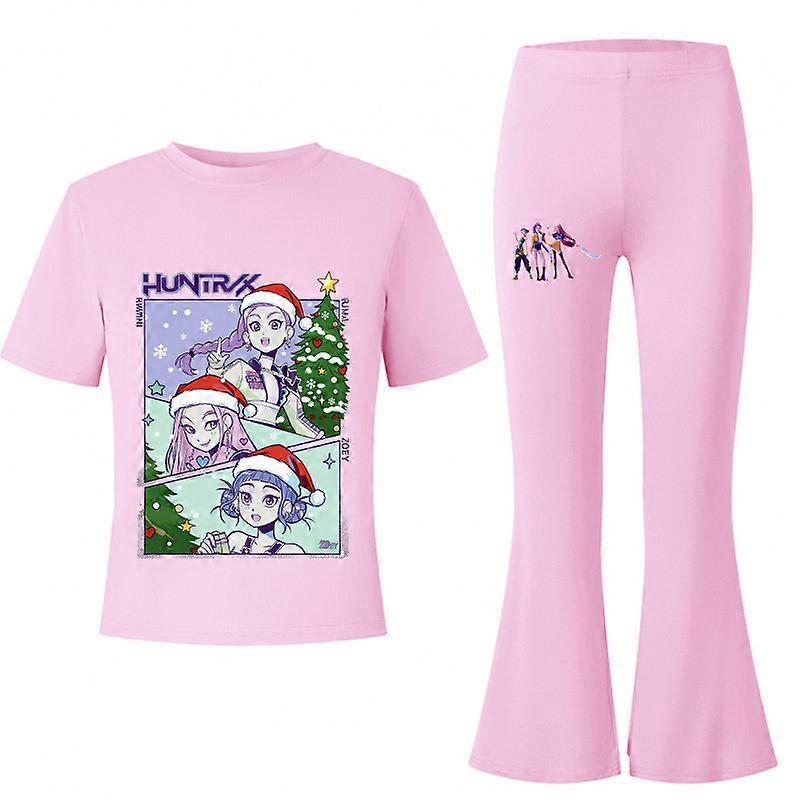 Flower Shape 2- Pink- Witch Hunter's Big Kids Summer Short-Sleeved T-Shirt + Flared Long Pants Fashionable Casual Set