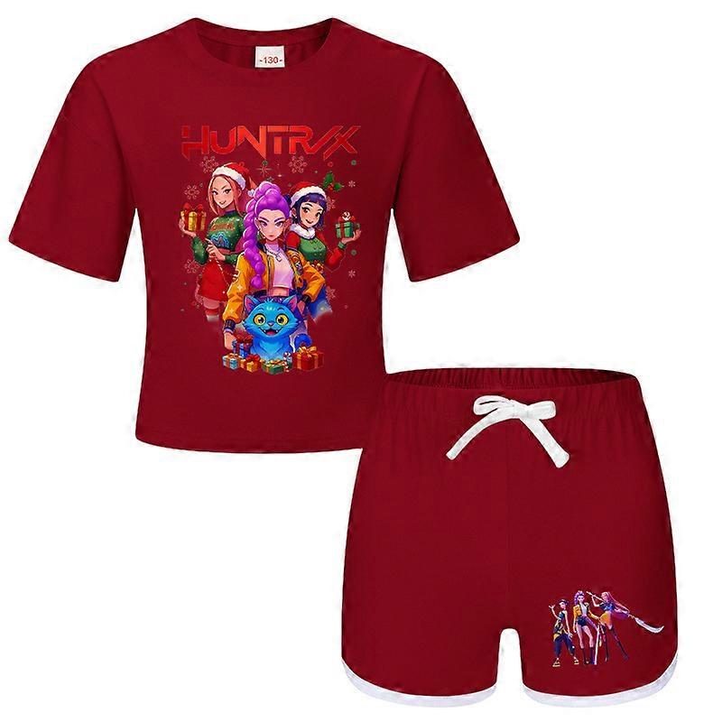 Dark Red- Witch Hunt Boys And Girls Children's T-Shirt + Shorts Printed Sports Pajamas Children's Set