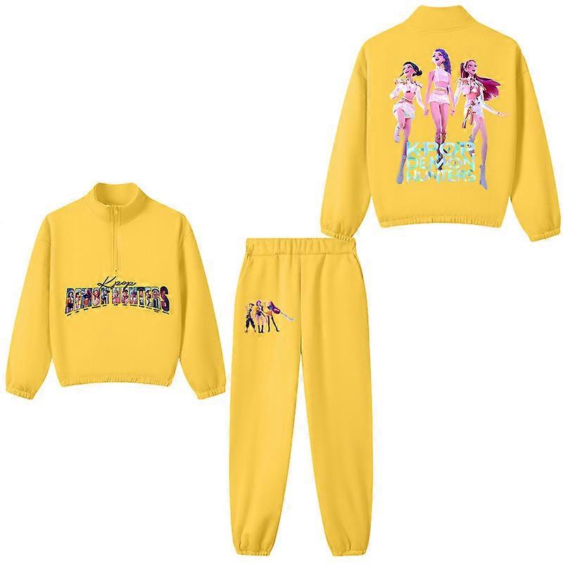 Yellow- Witch Hunt Boys' And Girls' Stand-Up Collar Half-Zipper Hoodies + Long Pants Sportswear Fleece Casual Children's Sets